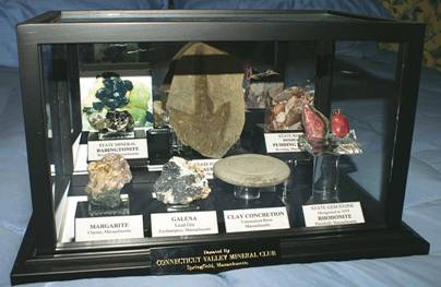 This guide to Significant Rocks and Minerals of Massachusetts, and the Massachusetts Mineral School Display Case accompanying it, was prepared by the Connecticut Valley Mineral Club, Springfield, Massachusetts, and presented to area public schools and other interested groups as part of the Club’s ongoing commitment to stimulate discovery and exploration of geological science.