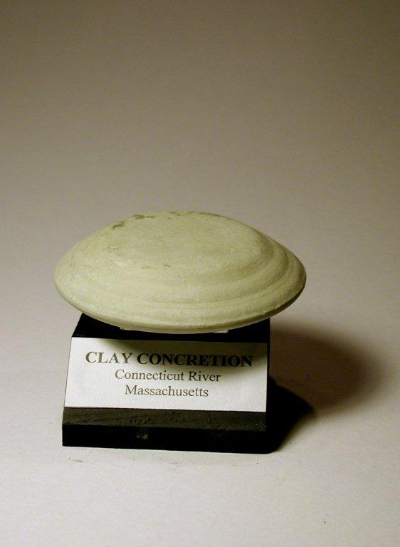 Clay Concretions are flat round discs of clay and silt that formed under water in the Connecticut River. These formations are not as old as some mineral occurrences in the area but are still estimated to be over 10,000 years old. Native Americans who lived along the Connecticut River in Hampshire County called them “puddle stones” and could very well have used them as money or as jewelry for ceremonies. No one is quite sure how these discs get their almost perfect round and layered shape, but some believe that the mud and clay get spun in a circular motion by moving water, building up layers of clay silt that, over thousands of years, have harden them into the discs we find today. The Hadley and Hatfield areas are known for having some of the nicest concretions in the country. The discs can range in size from 1 inch to 4 or 5 inches across and are regularly sought by divers and collectors today.