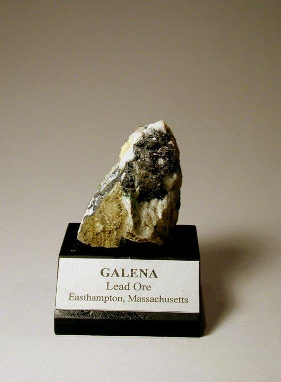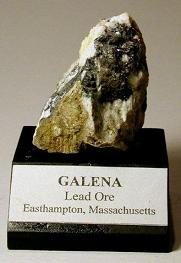 Galena is a dark gray metallic mineral and the principal ore of lead. Robert Lyman made the discovery of a very rich deposit in 1678 in the Village of Loudville, between Easthampton and Southampton in western Massachusetts. Lead was a necessity to the early settlers for use in their firearms both for protection and to acquire food. The ore was very rich in silver, smelting out about 12 ounces of silver per ton of lead. The mine in Loudville remained in operation for many years, adding to the supply of musket balls for the American Revolution, and for decades thereafter. Ethan Allen of Vermont worked the mines from 1765–1770. The mine was known as the Manhan Mines, named after the Manhan River, which runs adjacent to the mines.